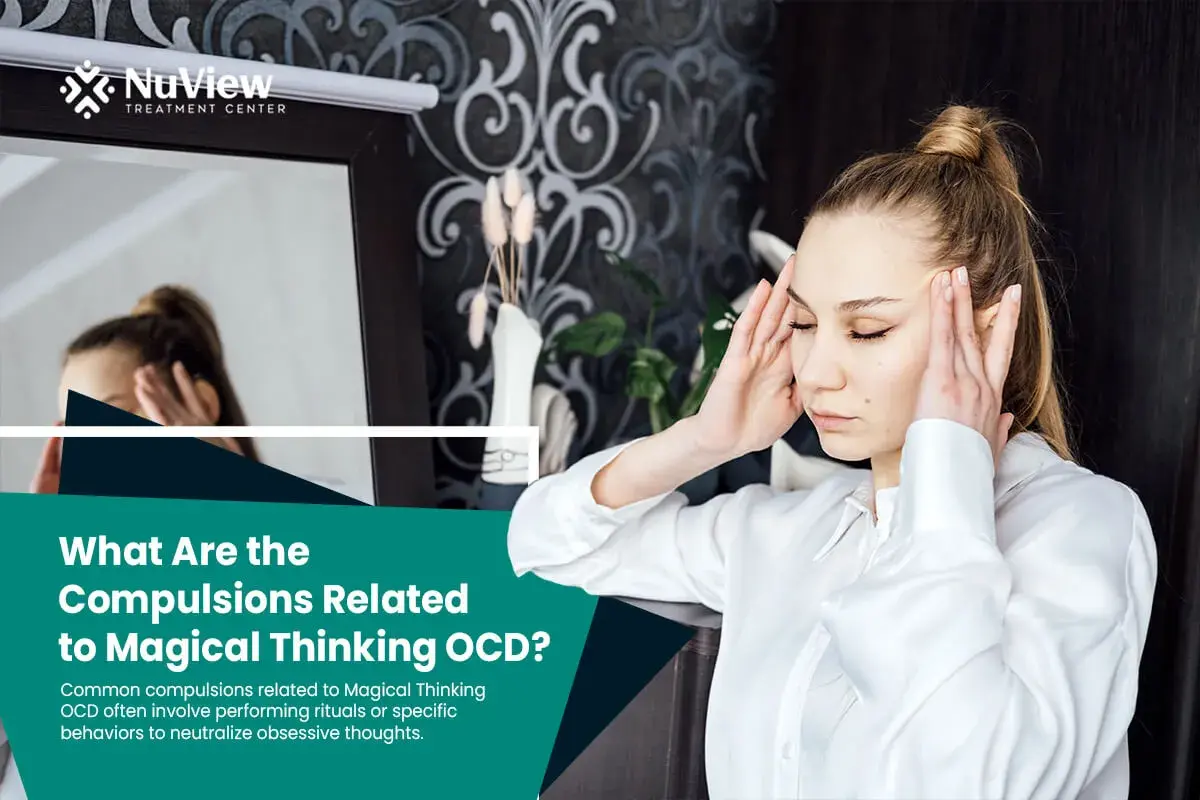 Common compulsions related to Magical Thinking OCD often involve performing rituals or specific behaviors to neutralize obsessive thoughts. These can include avoiding specific numbers, phrases, or objects or engaging in repetitive actions to reduce anxiety.