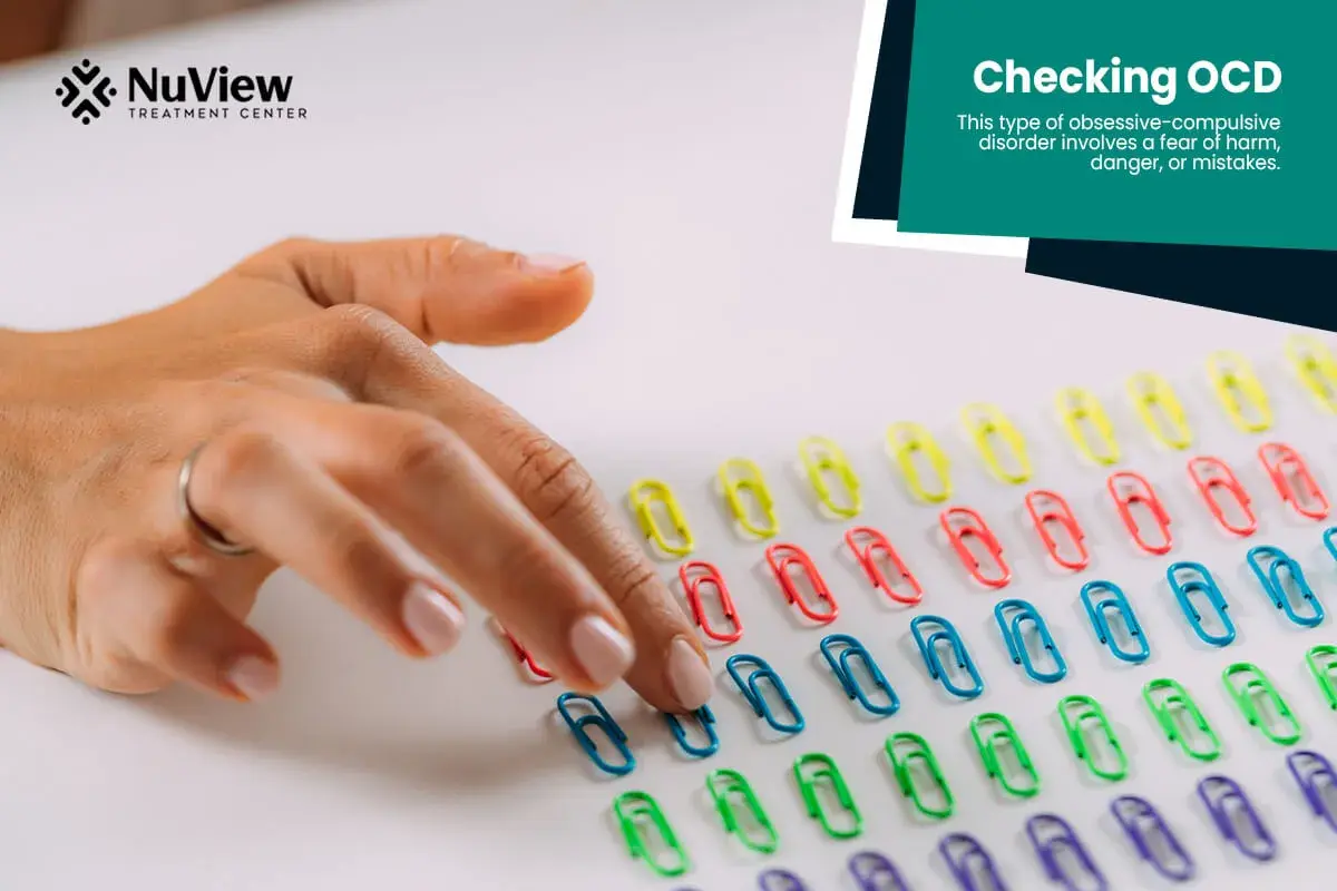 People with checking OCD may have compulsions such as repeatedly checking locks, appliances, switches, or their own body for signs of injury or illness. They may also seek reassurance from others or doubt their memory or perception.