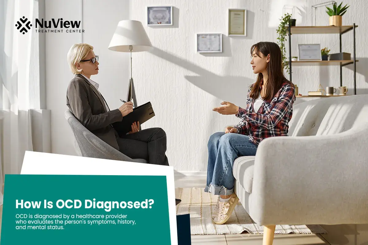 OCD is diagnosed by a healthcare provider who evaluates the person's symptoms, history, and mental status.